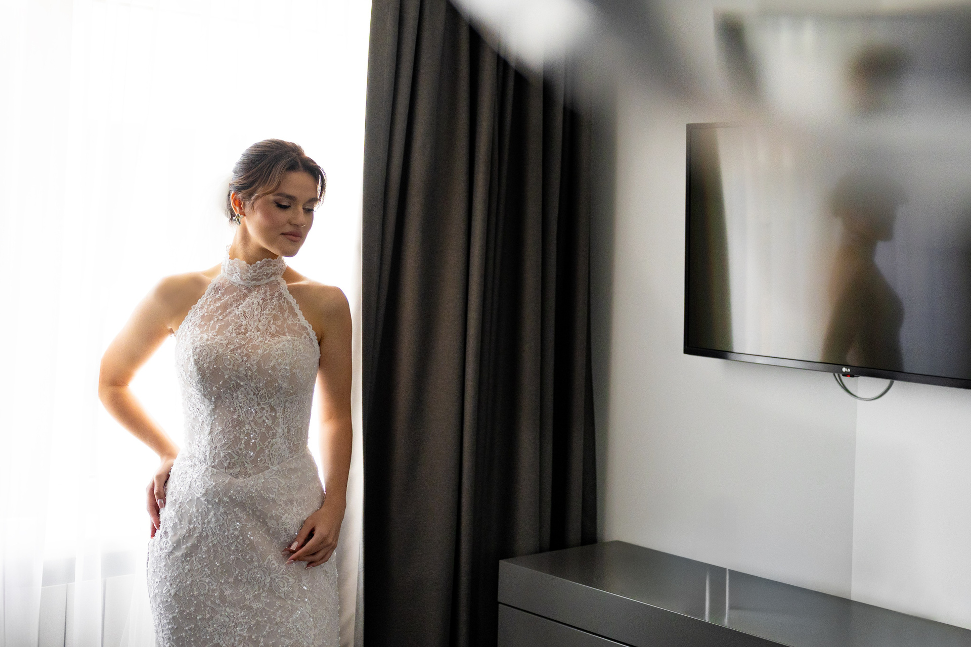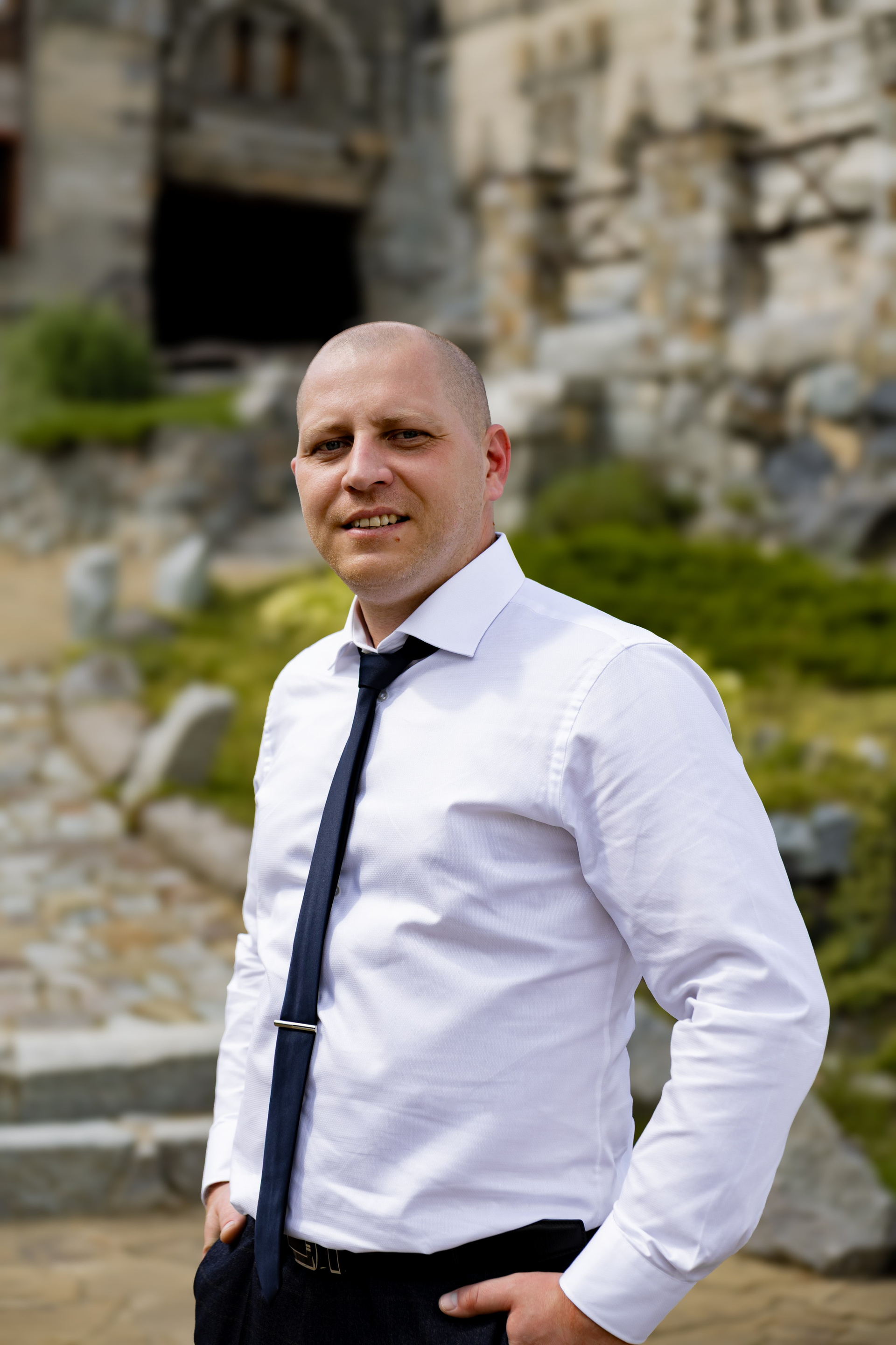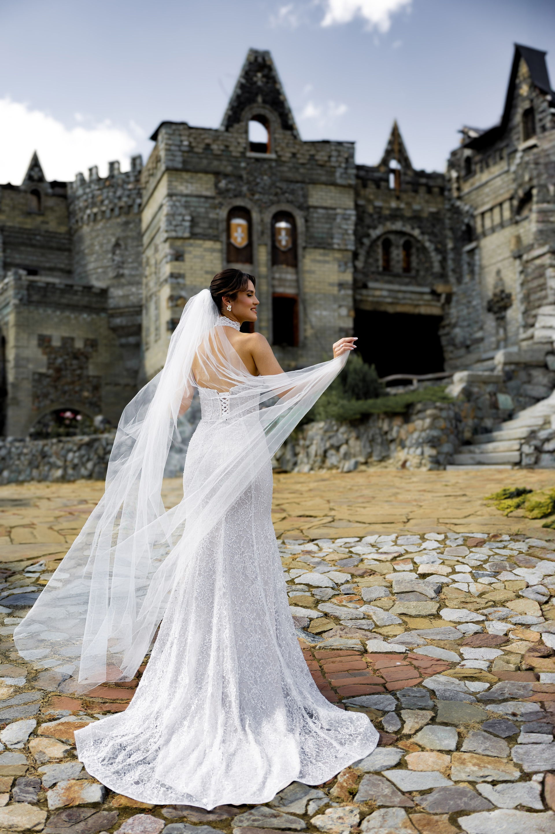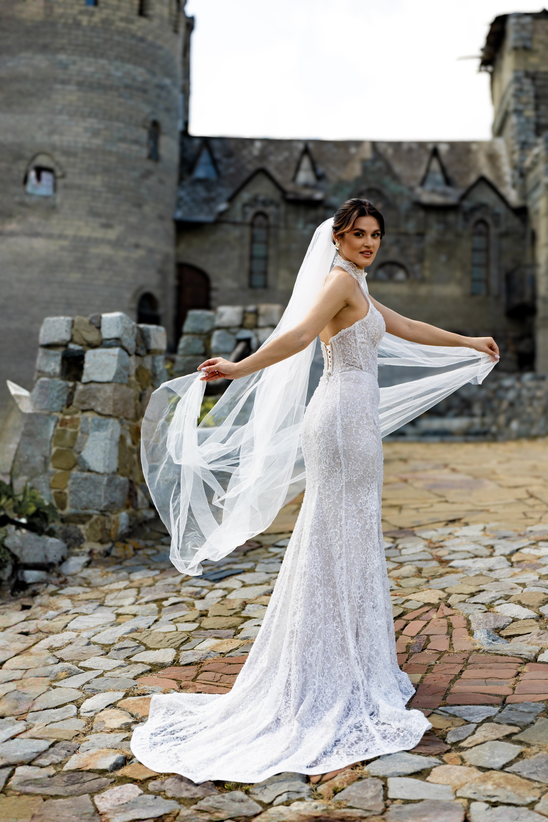 В тот день была особая обстановка… Такая, что почти весь Загс был закрыт. Бегом расписаться в маленьком кабинете. Выйти на улицу и снова идти под крышу. Фотаться с пришедшими на роспись гостями чисто символически и наспех. Поэтому, когда мы выехали на фотосессию в замок (а это на минуточку за городом), с великой радостью выпили шампанского и там уже все отлегло. Счастливые и довольные продолжили творить.